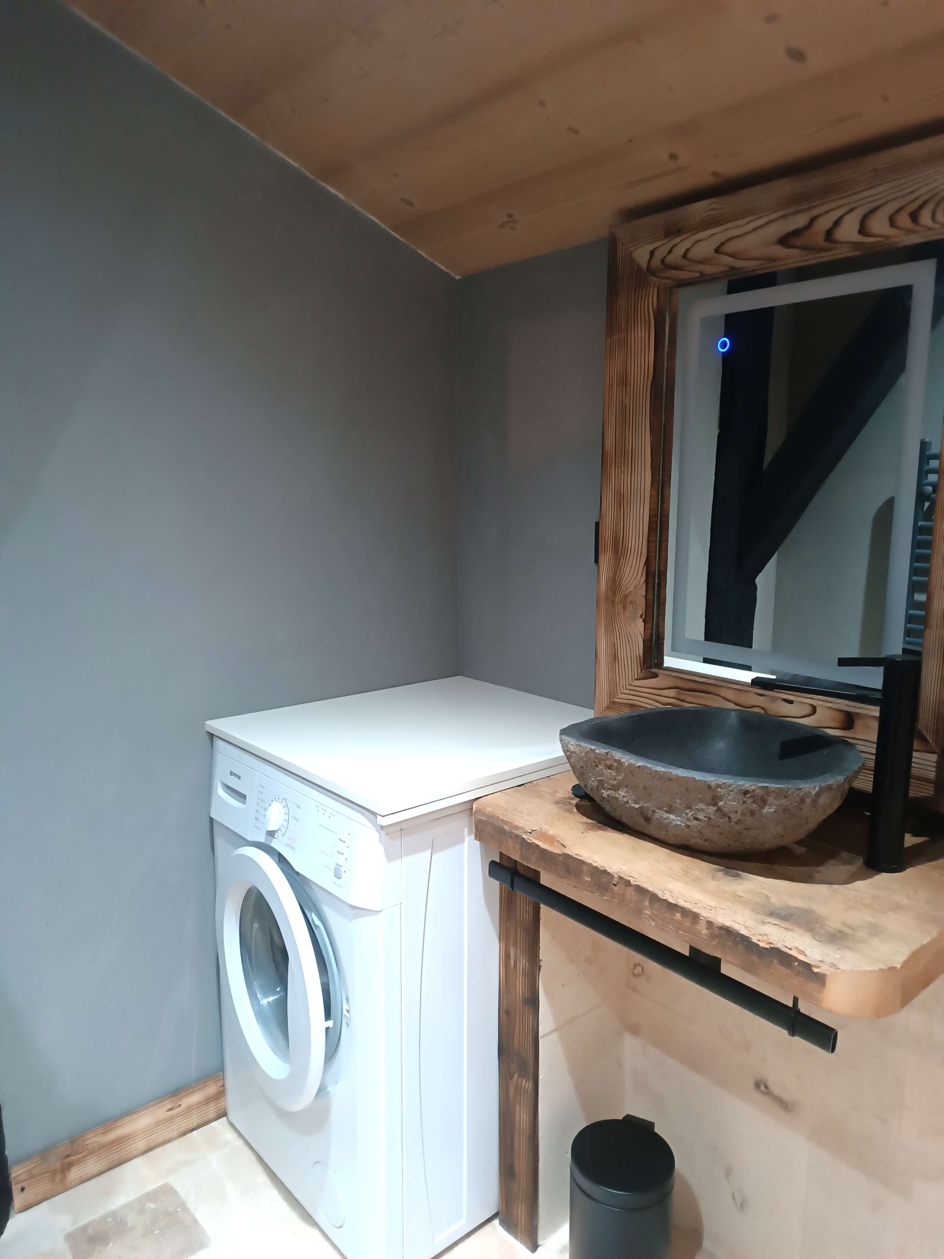 Salle de bain avec wc et machine à laver