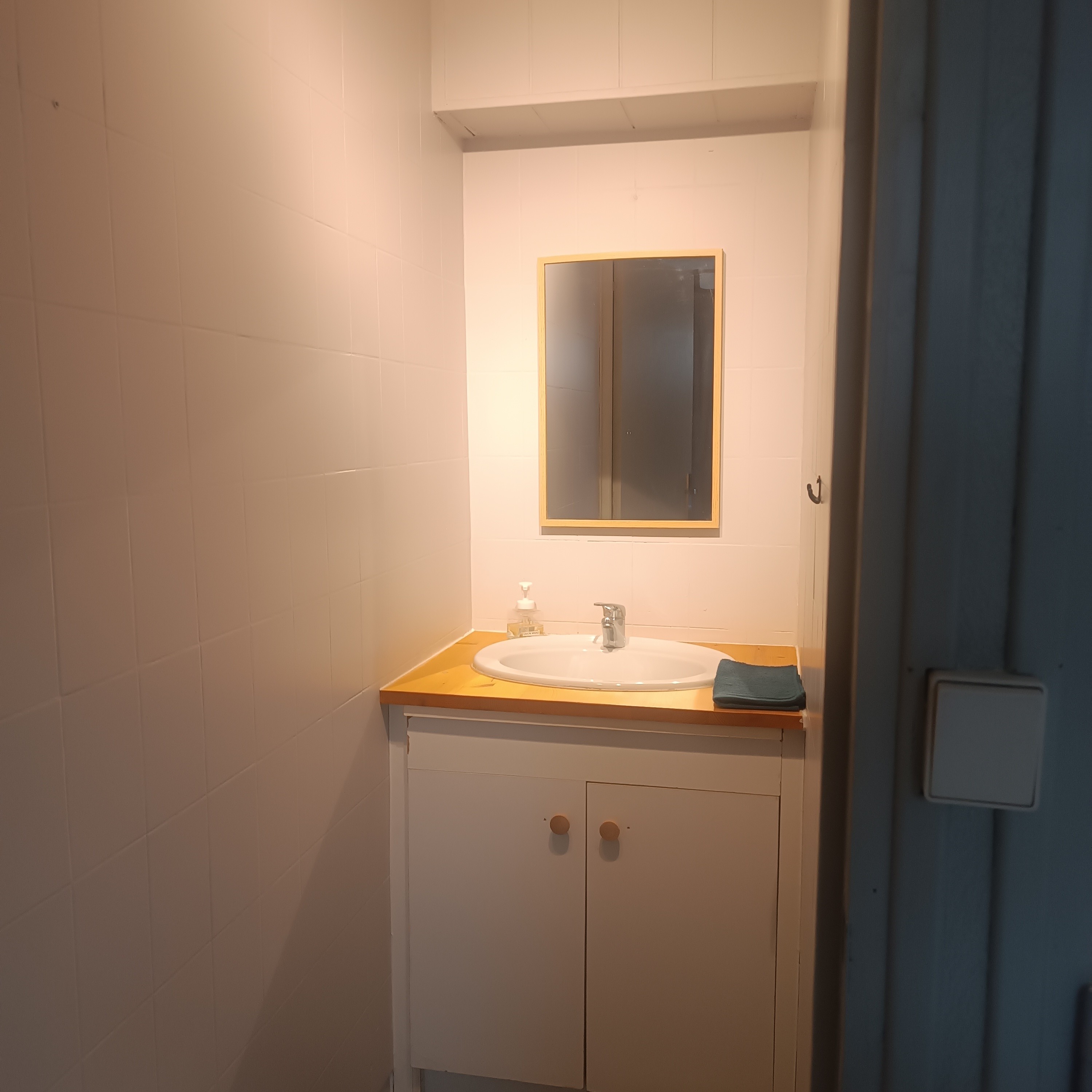 Lavabo donnant sur salon du gite Lynx 6 personnes Jura